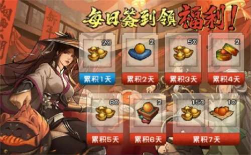 各位少侠自活动开始起,进行为期七天的签到活动,第七天即可获得大量元宝与道具奖励。