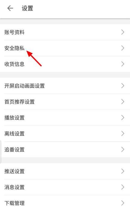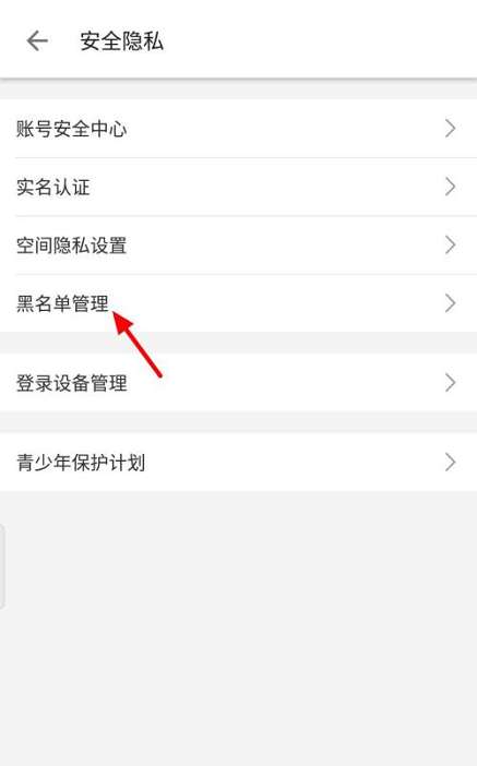 第四步:进入安全隐私页面后,点击【黑名单管理】;