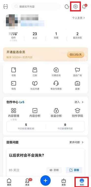 第一步:打开支付宝,点击我的,选择右上角小齿轮图标设置。