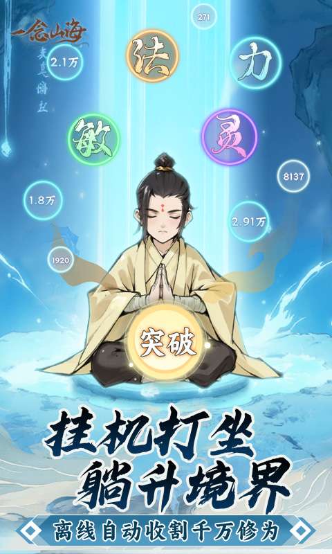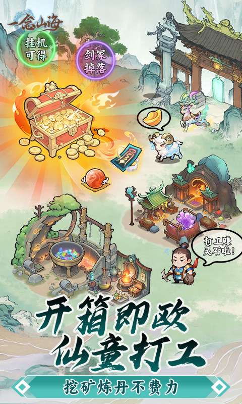 轻松挂机,剑指四方、万妖归谱,助修提力、山海结伴行,一念皆成仙