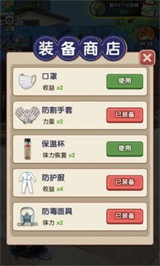 提供各种个性化装备,通过购买新的装备来提升翻找废品的能力。