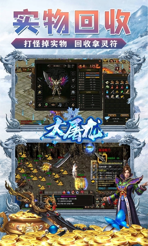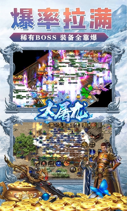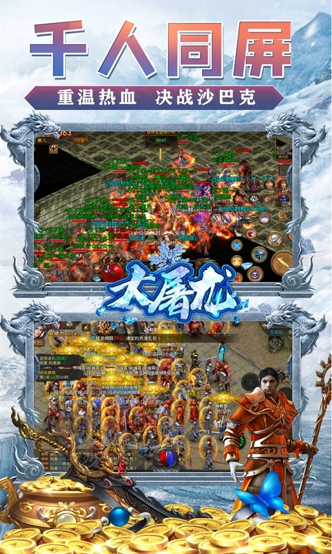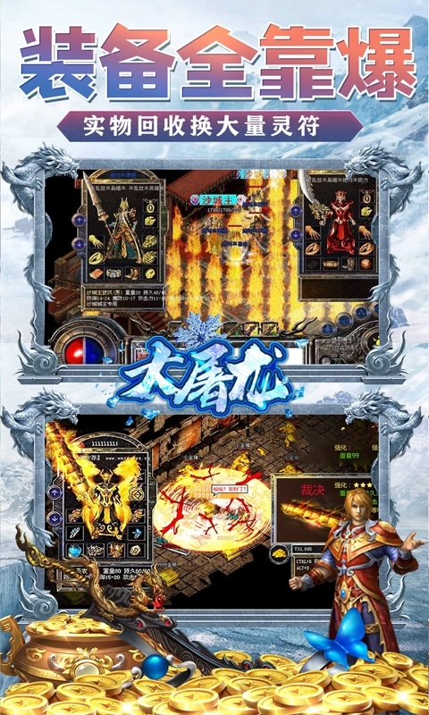 《大屠龙-送4转顶赞》是一款全新复古冰雪版本,开局就送到四转,还有送顶级赞助礼包助你一飞冲天!超高爆率券!稀有材料!购买赞助,送自动拾取,宠物租赁,赠超强斩杀bufff,助你砍遍BOSS!全新冰雪地图,活动boss无限刷!万人同屏,争夺沙巴克,等你来战!!绝对是你没见过的船新版本,还在犹豫什么,快来加入吧!