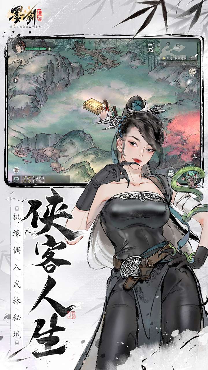 密林雪山、湖底水牢,奇门遁甲桃花阵,竹林深处有人家。感受多变的秘境场景和丰富的关卡设计,瞬息万变的随机事件,演绎充满危险与惊喜的武林江湖。墨剑江湖——原汁原味 打造真实武学修习