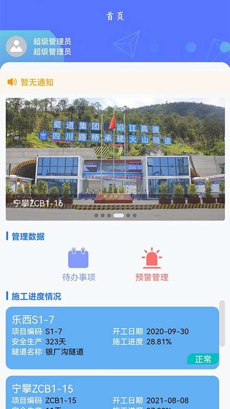专为隧道工程项目进度管理和工程资产管理而开发。经测试,可有效提高50%的工作效率。可管理项目,支持手机查看施工现场相关监控视频,施工过程透明,项目进度一目了然,可查看详细数据,支持生成报表。