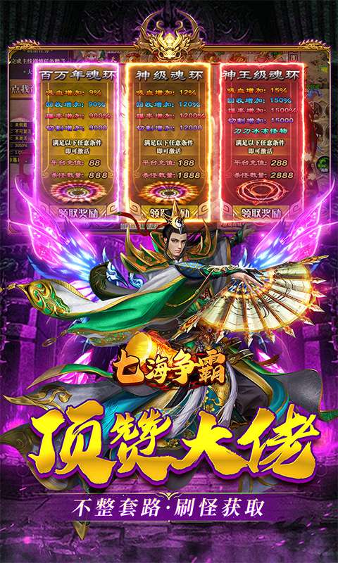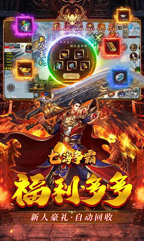 七海争霸(古刀西游)在这款传奇游戏中,福利满满超乎想象!一进入游戏,惊喜就接踵而至。自动回收和全屏拾取功能免费送 ,让你打怪过程中无需手动操作,轻松收集资源。创建角色便能领取 50 万元宝、1 万银币以及施毒术,为你的冒险之旅强势开局,助力前期快速发展。更令人惊喜的是,顶级赞助免费领取,让你享受特权待遇,获取珍稀资源与专属加成。在游戏进程中,累计登录、在线时长以及杀怪,都能让你无限领取元宝,元宝拿到手软。丰富的福利体系,旨在为玩家打造轻松、畅快、激情的游戏体验,让你毫无负担地沉浸在热血传奇的世界中,尽情享受战斗与成长的乐趣 。