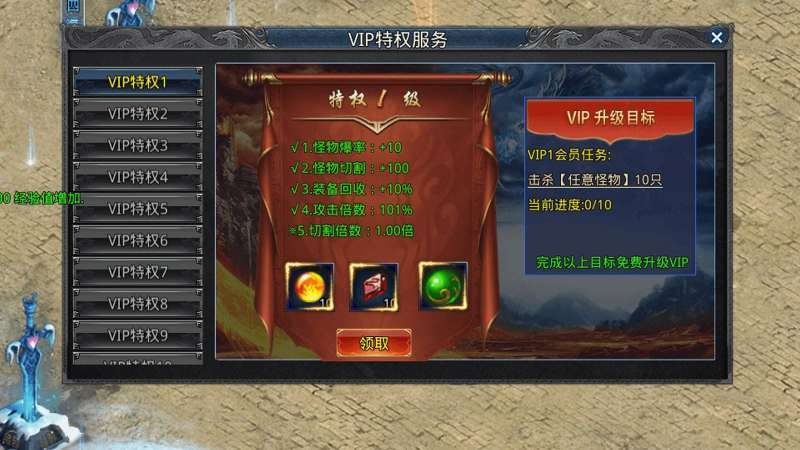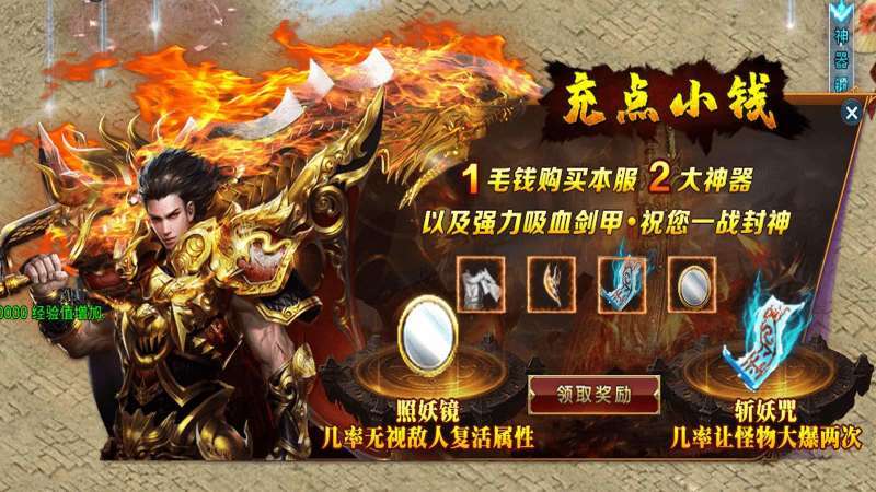 上线就送满V等特权,更有赤月套装、火龙套装等你领取;