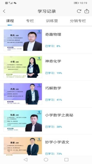 4.查看自己的学习记录,了解自十大评测网己在学习的课程内容,还能清楚的知道课程进度;