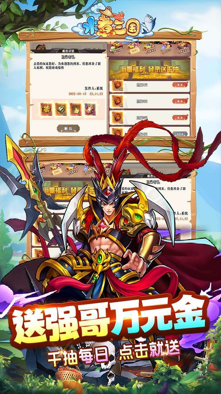 1、上线送:银票500元、三国高资质十星箱*1、元宝1000万、铜币1000万、英雄经验1000万