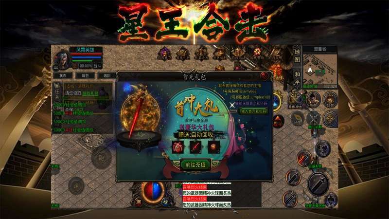 风霜星王合击996支持离线挂机玩法,线上战法道三大职业角色自由选择,风霜星王合击996还有热血的公会系统一起在线万人攻沙,玛法大陆由你称王称霸。装备全部都能自由交易,超高爆率,喜欢就来下载风霜星王合击996吧!