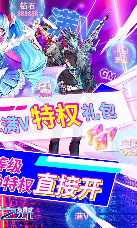 《中娅之光-无限GM转盘》玩家在游戏中扮演一名英雄召唤师,为了拯救大陆召唤各路英雄,不断冒险成长,征服死亡之塔,勇夺世界竞技场桂冠!各位冒险家创角即可获得满V(V10)及相应特权,钻石*88888,GM转盘券*10,SSR英雄自选礼包*1,还可通过特殊转盘获得超值好礼,助力成长之路!