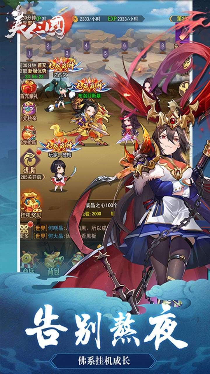 美人三国(血染江湖)是一款偏策略向的手游采用放置升级的模式主角战队会不断跑动战胜小兵,玩家可通过更换时装实现职业转换,在游戏中玩家要做的就是放置然后,强强联盟的刺激战队。