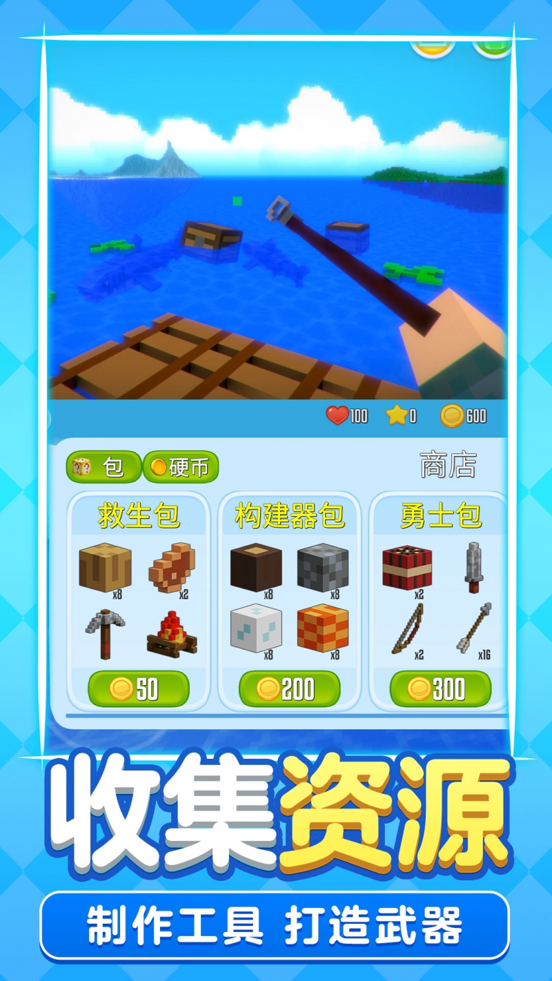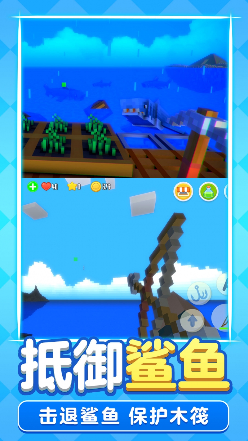 收集水中碎片制作装备,对抗凶残的鲨鱼,警惕海洋的危险。