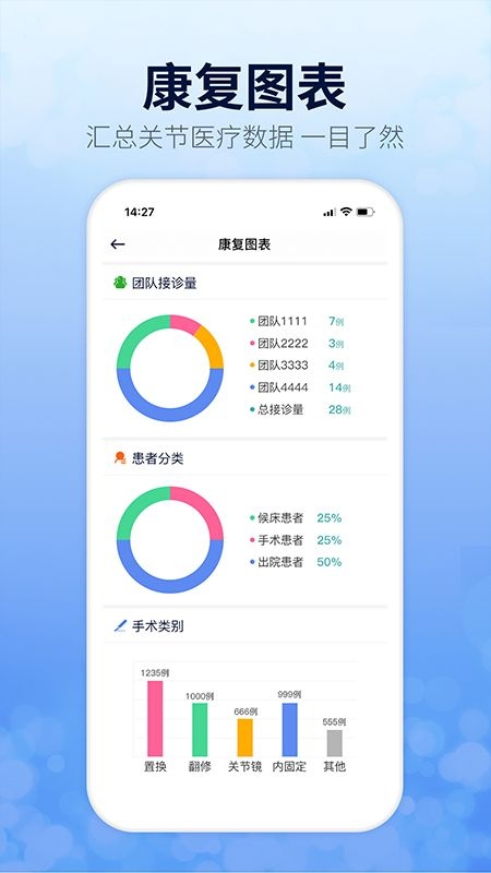 3、康复数据,数据随时统计上传,准确、直观地把患者的康复情况统计出来。