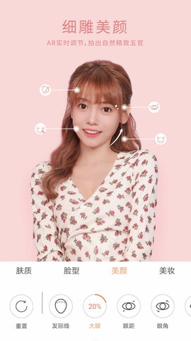 磨皮算什么美颜,要的是硬币眼、细高鼻、巴掌脸、大白牙!多种实时动态美颜功能,细致调整五官,边拍边美,给你照镜子般的惊艳体验。