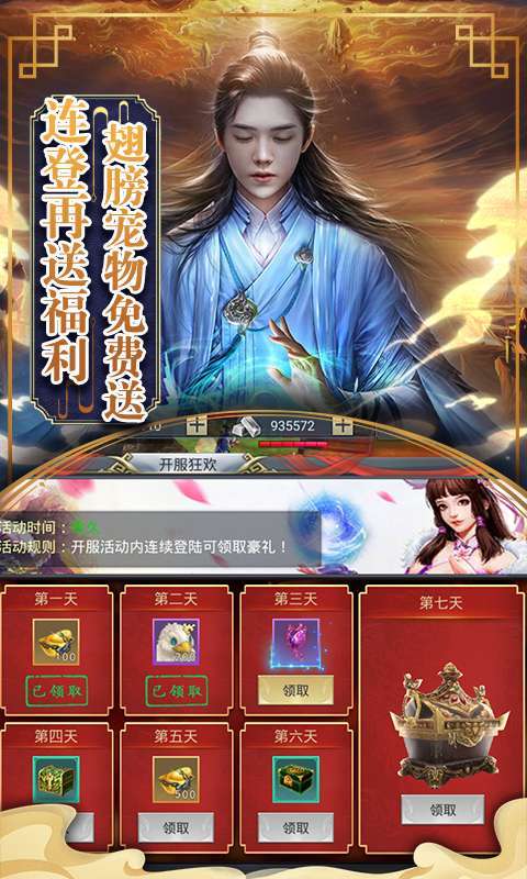 单日10000元:10级随机玛瑙*3,神兽凶兽血脉礼盒*10,灵宠仙果*500,强化礼包*50;