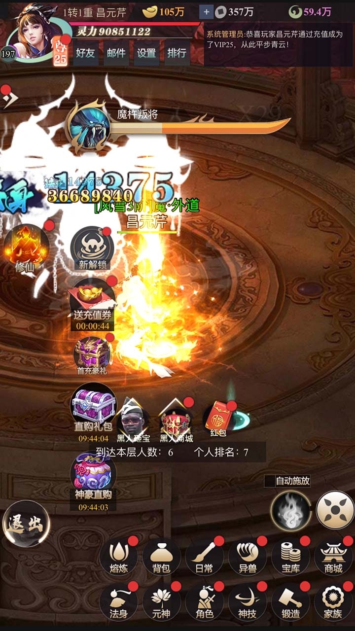上线即送满级Vip,6666绑元,5888888金币,超值礼包buff特权带你飞!