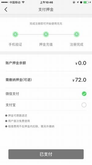 用户首次预缴68元的押金后,即可免费使用48小时,以后每次需2元服务费。