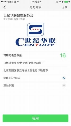 查找附近网点:进入网点咨询服务员,租借充电宝