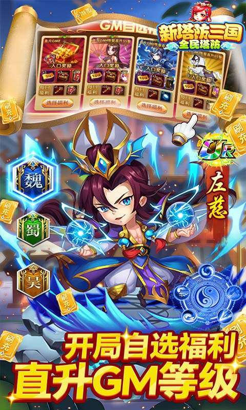 新塔防三国-全民塔防(送狂嗨刷充)【新塔防三国-全民塔防】开局自选福利,免费领取GM2、50元充值券和100个神将令;最高可直升GM7和65级;更有黄金钥匙每日送。新增GM狂嗨工具,上线送破解狂嗨卡,元宝充值、豪华首充、每日礼包免费刷。每日任务领充值券,副本积分宝箱领充值券,充值券可触发单日累计充值活动。