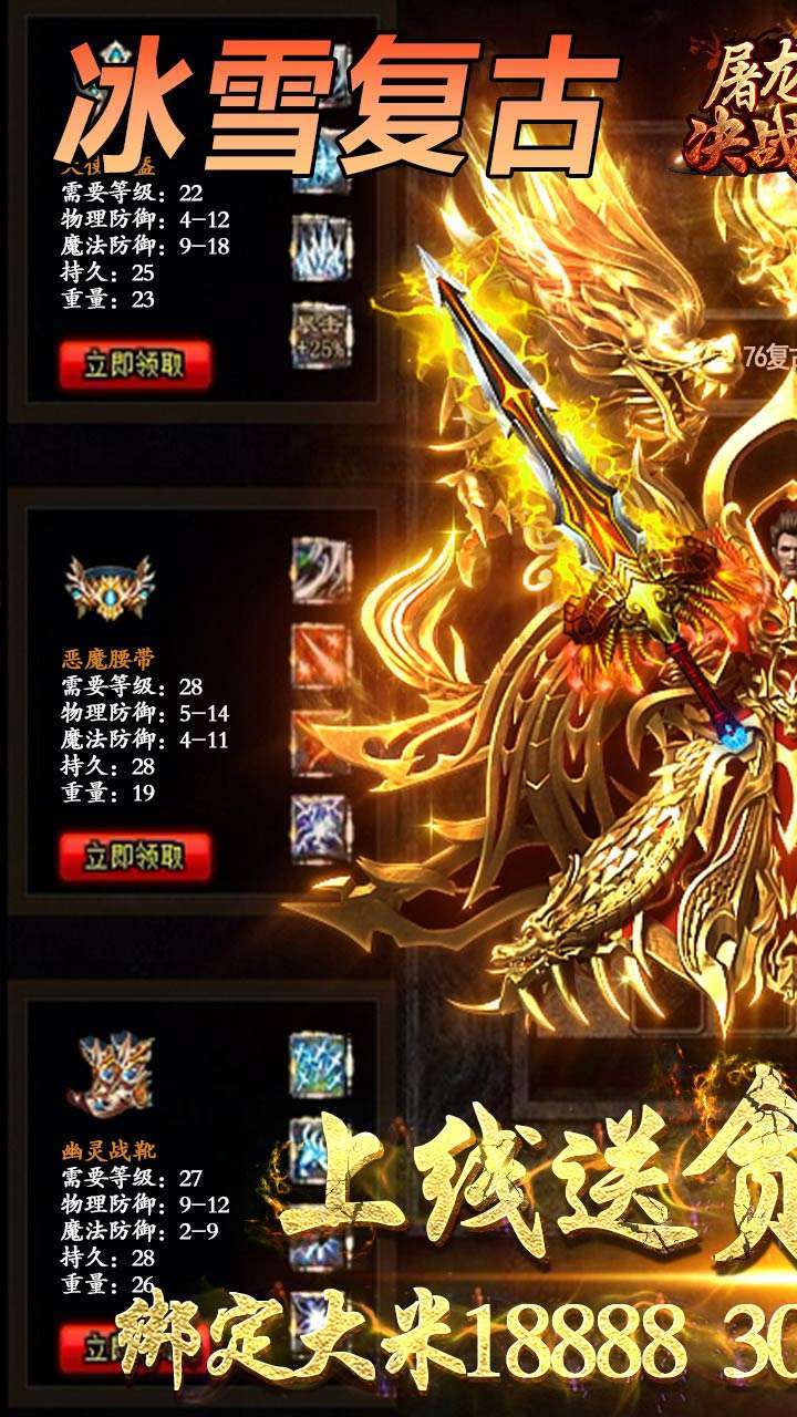 屠龙决战沙城(冰雪复古送大米)是一款超级经典的复古传奇游戏正版传奇。游戏当中的人物、怪物均采用全新设计的高品质模型,动作更为自然,形象精致生动;游戏场景精美宏大,音效清晰逼真,营造出良好的游戏氛围,极具代入感。