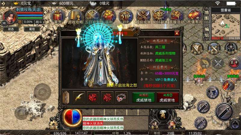 经典的传奇游戏,玩家上线就送满级VIP,各种游戏副本,玩家可以尽情的进行挑战。