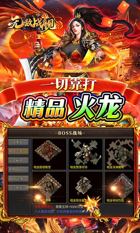 《无敌战舰》是一款高爆率福利火龙传奇正版手游!我们保持着公平公正理念,用心做好每一款游戏,打造经典传奇版本!福利多,上线送代币,首冲和冠名无门槛直接送,超级会员直接送满,原地起飞!游戏融入多种特色,全天活动不断,无暗坑无强制消费!简单耐玩,更有跨服战场,一战封神,玩法爽翻天,邀您重温经典火龙,呼朋唤友集结沙巴克!