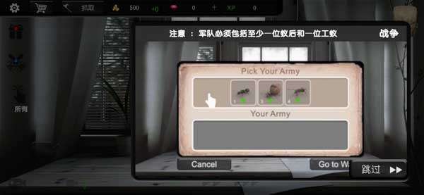 2、角色升级与成长:需要不断升级自己的蚂蚁角色,提升实力和能力,才能更安全地生存下去,通过升级,增强自己的战斗力,让角色变得更强大。