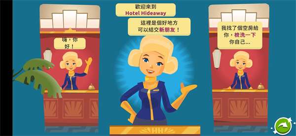 2、设有酒店空间设计华丽而充满吸引力场景,在其中与其他玩家互动,享受社交乐趣。