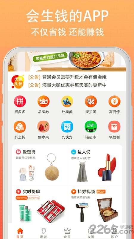 自购省钱—领优惠券下单,还能拿奖励,够省 分享赚钱—成为超级会员,打开商品中,点击分享,分享给身边好友,产生购物,您可获得奖励提成 邀请赚钱—成为超级会员,邀请好友注册下载成为您的粉丝,粉丝自购和分享成交的每一笔订单您都能获得奖励提成