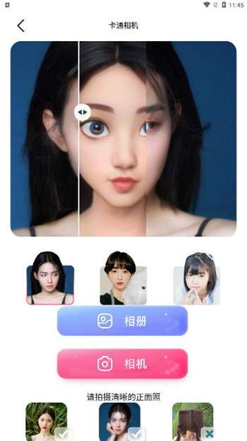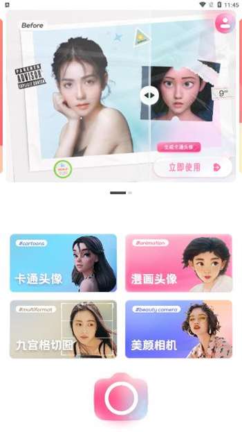 2、免费头像制作服务,支持3D卡通人物风格和九宫格创意切图等功能,还提供多种动漫滤镜供实时拍摄使用;