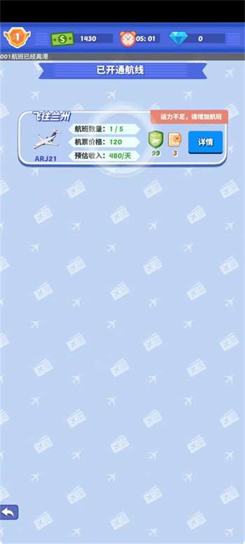 4、【轻松放置无需氪金】竖屏放置的方式,方便玩家在闲暇时间进行游戏,而且无需氪金,轻松享受航空经营的乐趣,无需花费额外的金钱;