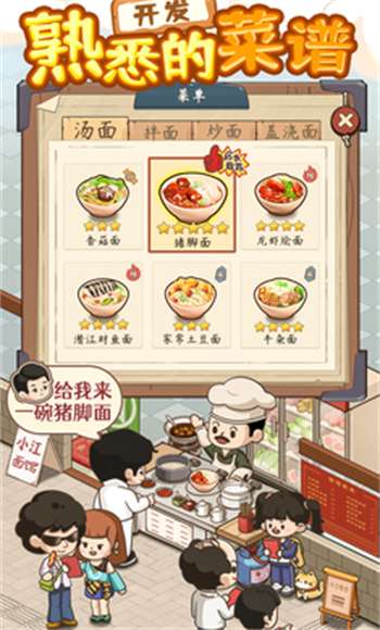 4、【家庭经营乐趣】和家人一起经营面馆,解锁更多食谱,为更多客人烹饪美味佳肴,让家庭充满更多美好的餐点,这种家庭经营的乐趣更加亲切;