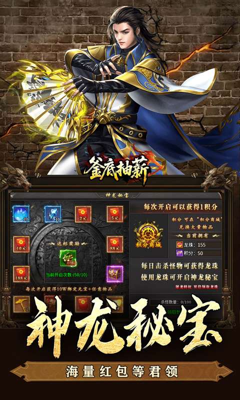 欢迎来到《釜底抽薪》,一款专为热爱冒险与挑战的玩家打造的全新传奇类手游!这里不仅有热血沸腾的战斗体验,更有丰厚福利和轻松上手的玩法,让你畅享游戏的乐趣! 1. 新人豪礼,上线即享 新玩家上线即可领取豪华礼包,拾取爆率仓库全开,助你快速成长,赢在起跑线! 2. 海量爆出实物,轻松通关 游戏中怪物爆率超高,稀有实物、龙币轻松获取,通关不再困难,收益翻倍! 3. 主线引导,玩法简单 新手引导清晰明了,操作简单易上手,绝不内耗玩家,轻松享受游戏乐趣。 4. 丰富剧情,红包多多 主线剧情跌宕起伏,稀有材料与超多红包等你来拿,边玩边赚,惊喜不断! 5. 神龙秘宝,海量红包等你领 开启神龙秘宝,海量红包、稀有道具随机掉落,幸运玩家就是你! 6. 灵宠养成,刷怪无压力 培养专属灵宠,解锁极品群攻技能,刷怪轻松无压力,战力飙升!《釜底抽薪》以极致畅快的战斗、丰厚的奖励和贴心的玩法设计,打造属于你的传奇世界。无论是挂机刷怪,还是剧情闯关,都能让你轻松享受游戏带来的每一份快乐! 立即下载《釜底抽薪》,开启你的热血传奇之旅!