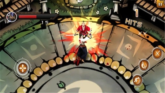 屏幕上的按钮可帮助您轻松控制忍者阴影,并轻松运用各种策略来赢得武士战斗。