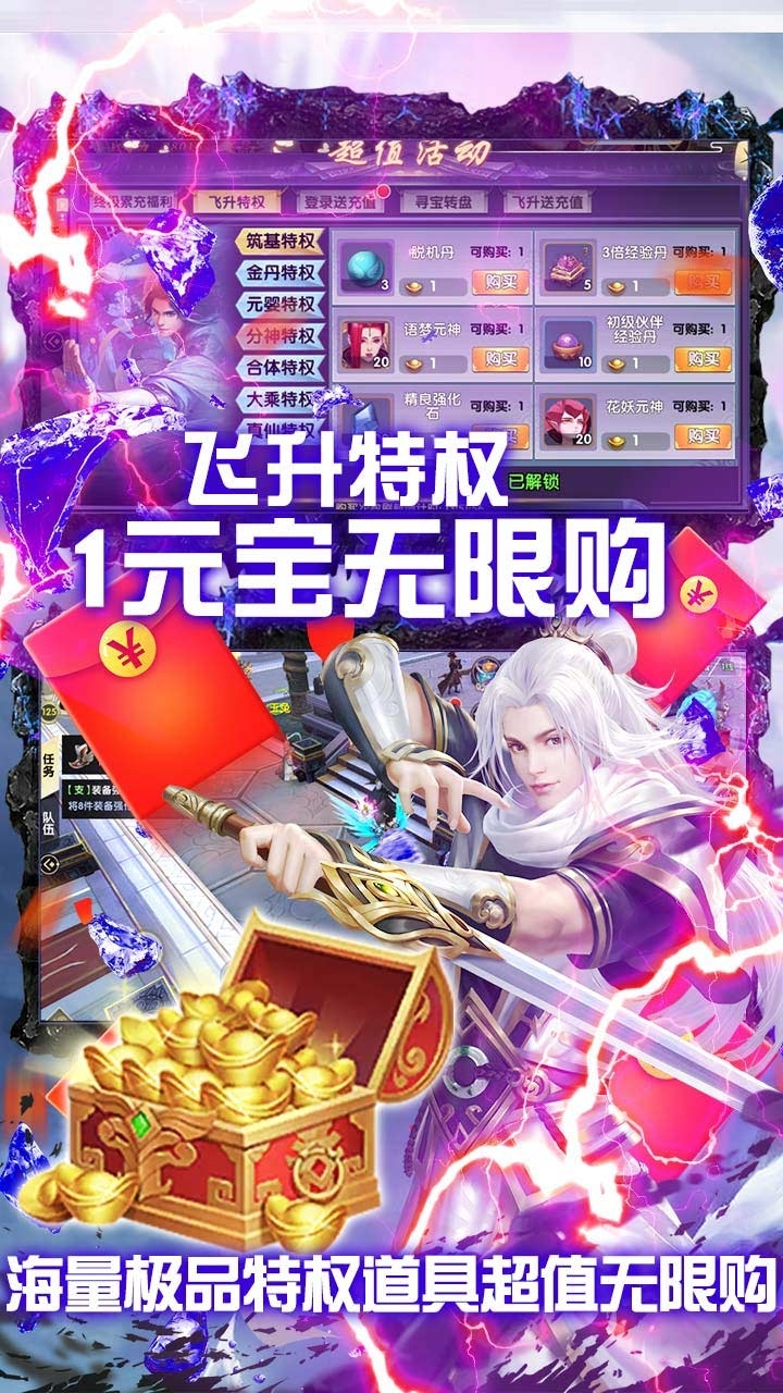 上线送vip9,飞升特权登录免费开启,免费领取一万元充值卡