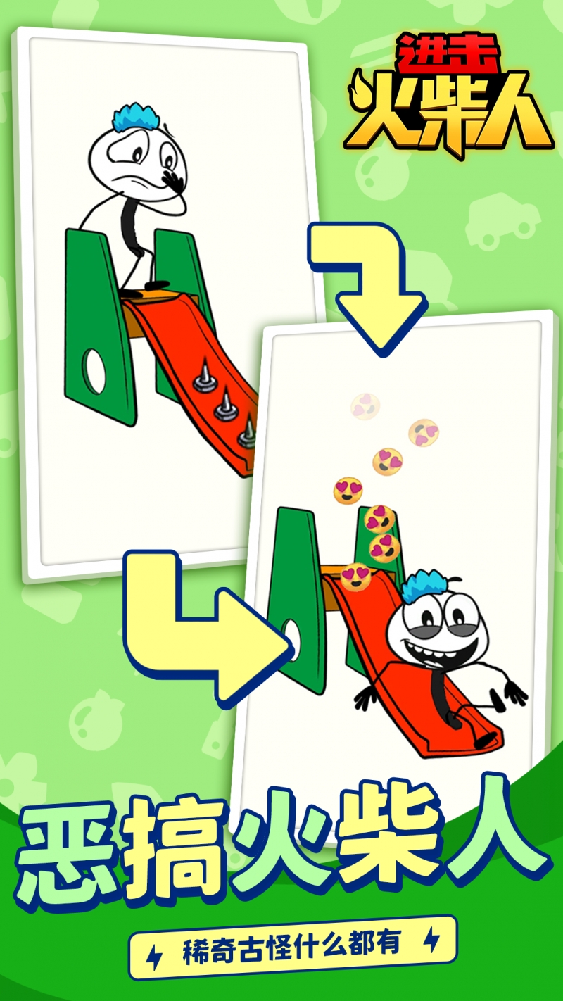 进击火柴人,一款火柴人画画闯关游戏。游戏玩法非常魔性,玩家将解锁多个画画关卡,开发你的脑洞,不断画画闯关,魔性主题关卡开启,帮助火柴人完美通关吧。