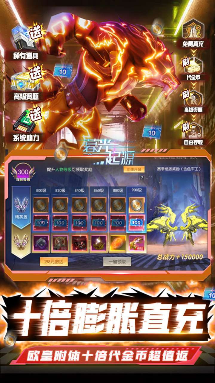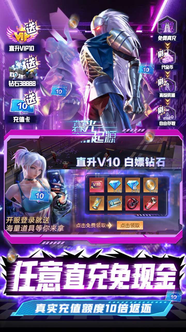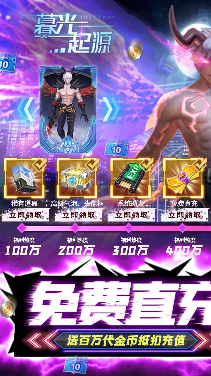 登陆升级领取百万代金币,可替代RMB充值或者购买礼包,免费直充,自由充值;真实充值额度十倍返还,超高福利版本,绝对让你玩的爽,未来式装备华丽外显 翅膀酷炫,坐骑时装都是你的最爱,摩托滑板随你选,站上街头当靓仔,爆炸式战力劲爽感观 多重辅助,丰富系统;