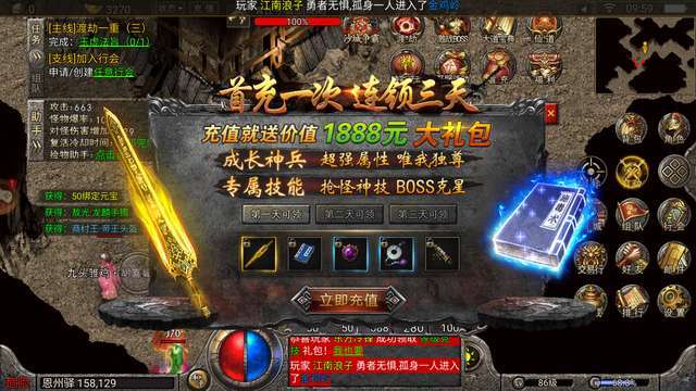 礼包内容:5万元宝*3,500战神币*1,等级丹碎片*10,副本卷轴*10