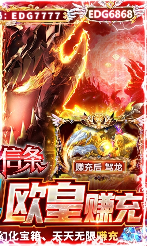 6、天降欧皇:每日可免费领取欧皇宝箱、幻化宝箱,抽真充、超强幻化!