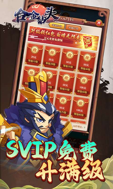 上线福利: 红将免费十连抽,心怡武将直接领走 新服活动壕气送,自选金将唾手可得 征战推关领大奖,新服竞技战力无双 开局送GM无级别套装,轻松开荒不卡关 升级免费领万充,达成条件再领万充 SVIP免费升满级,特权在手天下我有