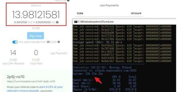 耐心等待半小时到一小时后,我们就可以前往矿池查看收益了。