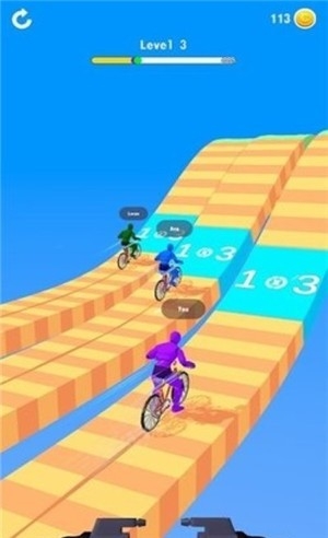 山地车竞速赛:是一款汽车奔驰在赛道上的像素休闲卡通风格的趣味自行车赛车游戏。在这款游戏中,玩家要控制自己的骑手在保证速度的同时平稳通过空中赛道,别掉下去然后争取第一个到达终点。
