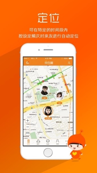 亲在哪是在中国电信号百信息服务有限公司推出的产品,使用移动定位技术,结合地图,可准确快捷地查看儿童、在校子女、老人等家庭成员的地理位置,为用户提供家庭亲情关怀的信息服务,随时传递关爱,呵护家人安全。