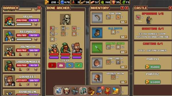 可以招募各种类型的英雄,每位英雄都有独特的技能和属性,适合不同类型的任务和战斗,玩家需要负责建设和管理城堡,选择建筑物的布局,升级城堡。