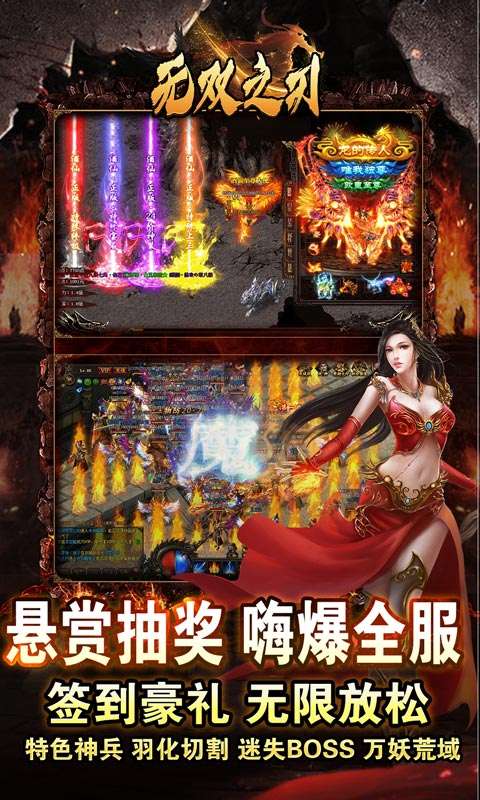 无双之刃(福利全爆狂送)游戏简介 欢迎来到《无双之刃》,一个充满奇幻与激情的魔法世界!这里为你准备了无尽的乐趣和丰厚的奖励,让你畅享顶级游戏体验! 1. 上线就送:超值福利等你来拿 从你踏入这个世界的第一刻起,便能享受以下豪礼: 自动拾物:轻松获取掉落物品,无需手动操作。 自动回收:一键回收不需要的装备,资源利用最大化。 超大背包:海量存储空间,再也不用担心装不下。 三页仓库:更多存放空间,随心所欲管理你的财富。 2. 七天扶持:真实充值体验 为了让每位玩家都能感受到充值的乐趣,我们特别推出七天扶持计划: 大量真实充值:每天登录即可领取,不充钱也能体验充钱的快感! 3. 在线奖励:每日惊喜不断 每天上线都可以领取丰富奖励: 大量材料:用于提升装备、技能等。 充值货币:助你在游戏中更进一步,轻松购买所需道具。 4. 每日杀怪:VIP免费送 每日参与杀怪活动,不仅能获得经验值,还有机会赢取: 大量充值红包:每次击杀怪物都有几率掉落。 VIP积分:累积积分可升级VIP等级,享受更多特权,VIP免费送! 5. 福利BOSS与超级BOSS 每个地图都设有: 福利BOSS:掉落