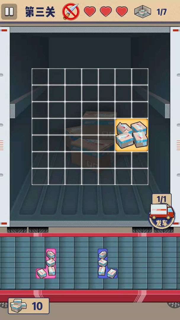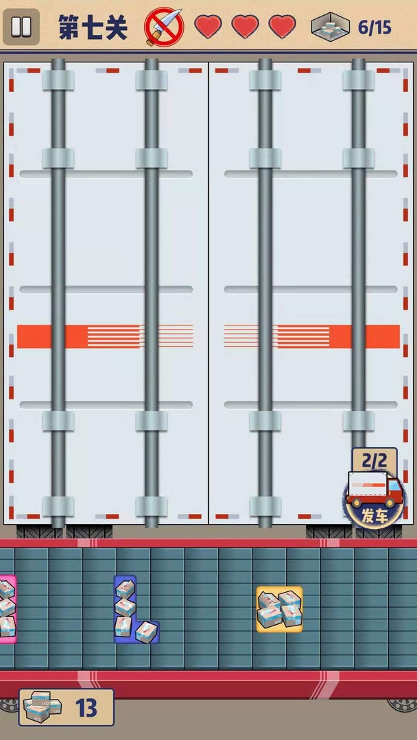 4、采用萌趣的卡通画面,在关卡中挑战完成装货的任务,解锁更多的挑战,收获惊喜乐趣,根据关卡要求,将足够数量的货物放在货车上。