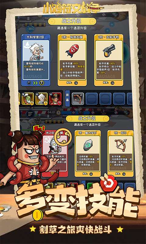 一款独具特色的肉鸽闯关割草类游戏,在这里你将召集别具特色的英雄,自由搭配,面对海量敌人与巨兽的侵袭,体验无双战斗的乐趣。同时,游戏还提供了丰富的养成系统,以及挂机模式助力解放双手,让玩家可以轻松享受游戏乐趣!