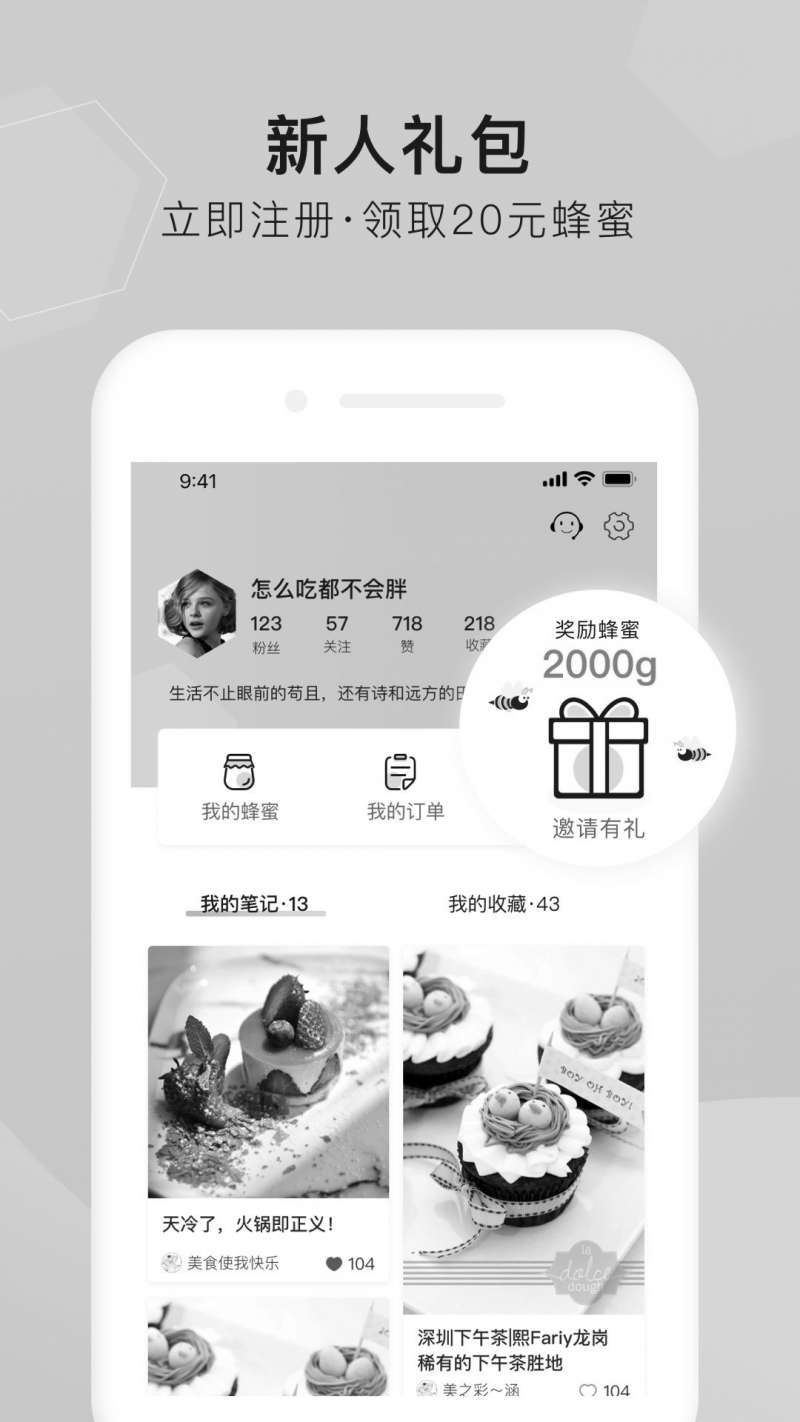 -蜂蜜福利:觅食蜂app通过发布探店内容,评论点赞转发,每天签到等方式获得蜂蜜,蜂蜜可获得到觅食蜂专属福利权益;