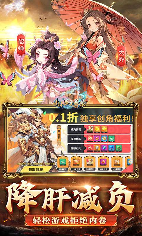 三国放置卡牌《小小幻兽录》0.1折重磅来袭!全场充值0.1折!开局即送贵族6和神吕布,升级送万元充值卡,每日活跃无限送充值卡,诸多福利等你解锁!玩家作为穿越者回到三国时期,扮演一位智勇双全的主公,与历史上著名的战略家和猛将们并肩作战。只需要收集不同的武将,通过合理搭配,配合强大的神器灵宠等系统,组成超强的阵容。每个武将的属性和技能各不相同,可以根据战术喜好选择,制定独特的策略组合。除卡牌搭配外,还有各种战役和副本等你去征战,通过战胜敌人提升排名和声望。 游戏采用了精美国漫的画面风格,每个战斗场景都充满了震撼力和视觉享受。还精心打磨了角色形象和细节,让玩家能够感受到历史上伟大将领的英勇和智慧。如果你是一个喜欢策略游戏和历史文化的爱好者,这将会带给你前所未有的游戏体验。快来组建自己的三国阵容,去征服敌人,成为真正的霸主!