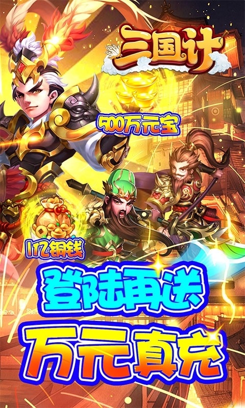 《三国计-送GM万元充》正版授权三国回合制手游,开局赠送GM特权,来玩即送10000真充!绿色福利版本全新来袭:首日升级送500元充值+开局即送GM特权,登录再送10000真充,打造前所未有的战斗回合体验!人气大作轻松上手,战马飞驰、三国名将,巾帼英雄豪情助战!更有上古灵兽强力助阵,突破极限激发最强战力,让你体验全新刺激的三国之旅!
